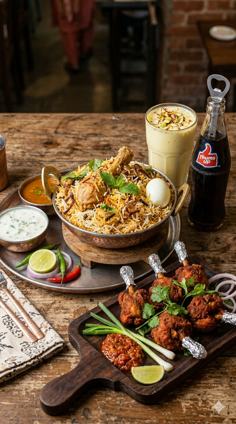 Adding a crispy twist to the meal is the Chicken Lollipop. These are fried to golden perfection, offering a crunchy exterior and a soft, juicy interior. Marinated with bold spices and sauces, each lollipop delivers a spicy and tangy kick that pairs beautifully with the rich biryani.